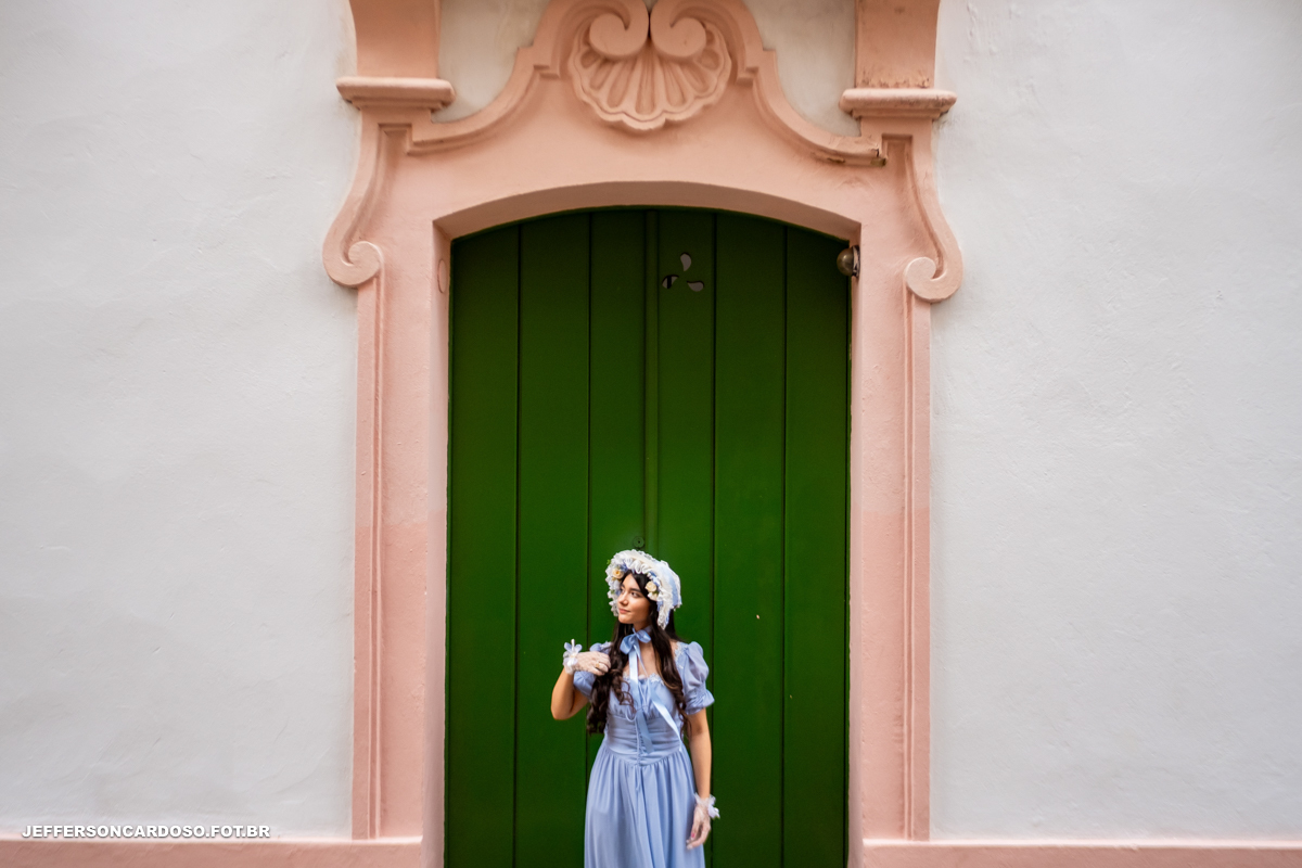 Foi assim que começou o ensaio da Alice no Palacete Bolonha — ou melhor, foi assim que quase não começou rs. Mas sabe quando tudo conspira… bastou esse tempinho apertado, um vestido inspirado na época, e o brilho nos olhos da Alice pra tudo acontecer.