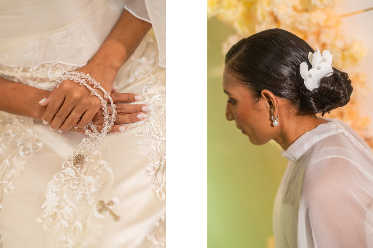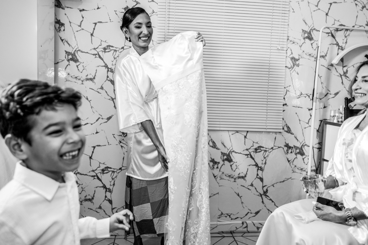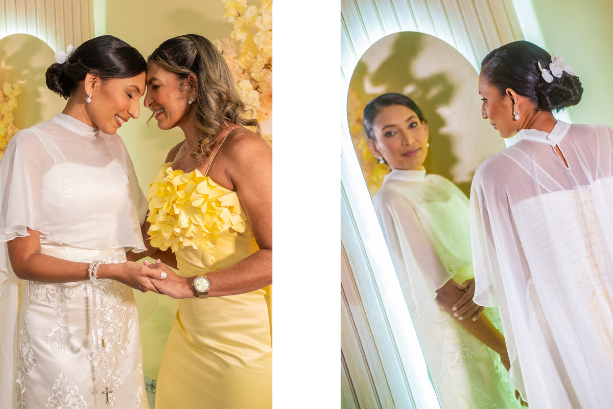 No making of, um detalhe carregava tudo: o vestido feito pela mãe da noiva.