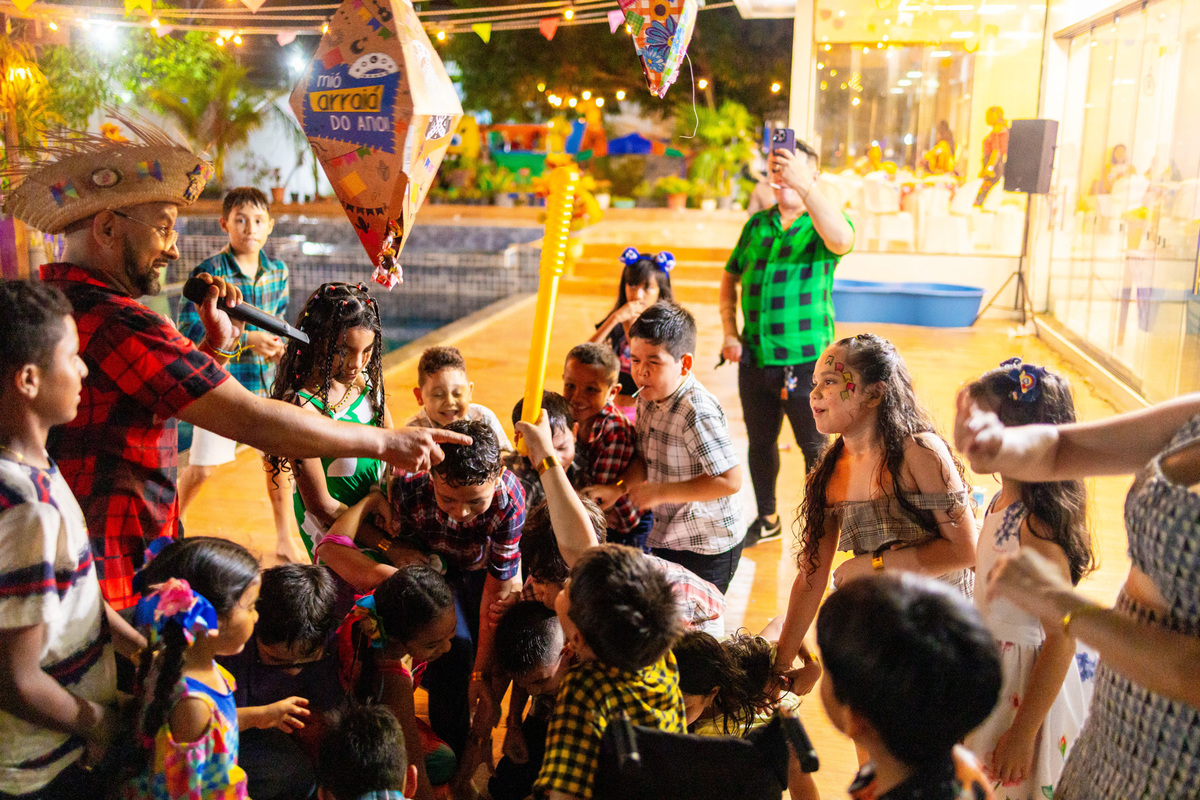Foi daqueles dias que a gente não quer que acabe. Bandeirinhas no alto, risadas soltas pelo quintal, mãos pequenas cheias de doces e o brilho no olhar de quem só quer viver o agora.