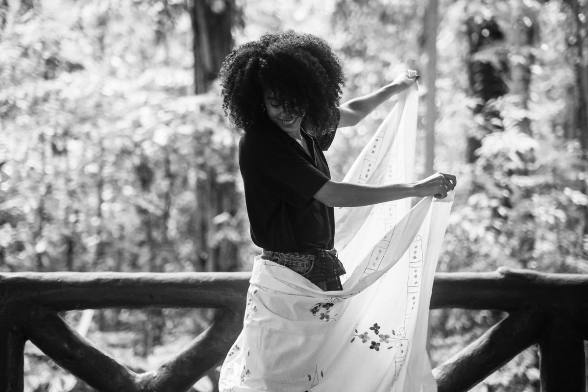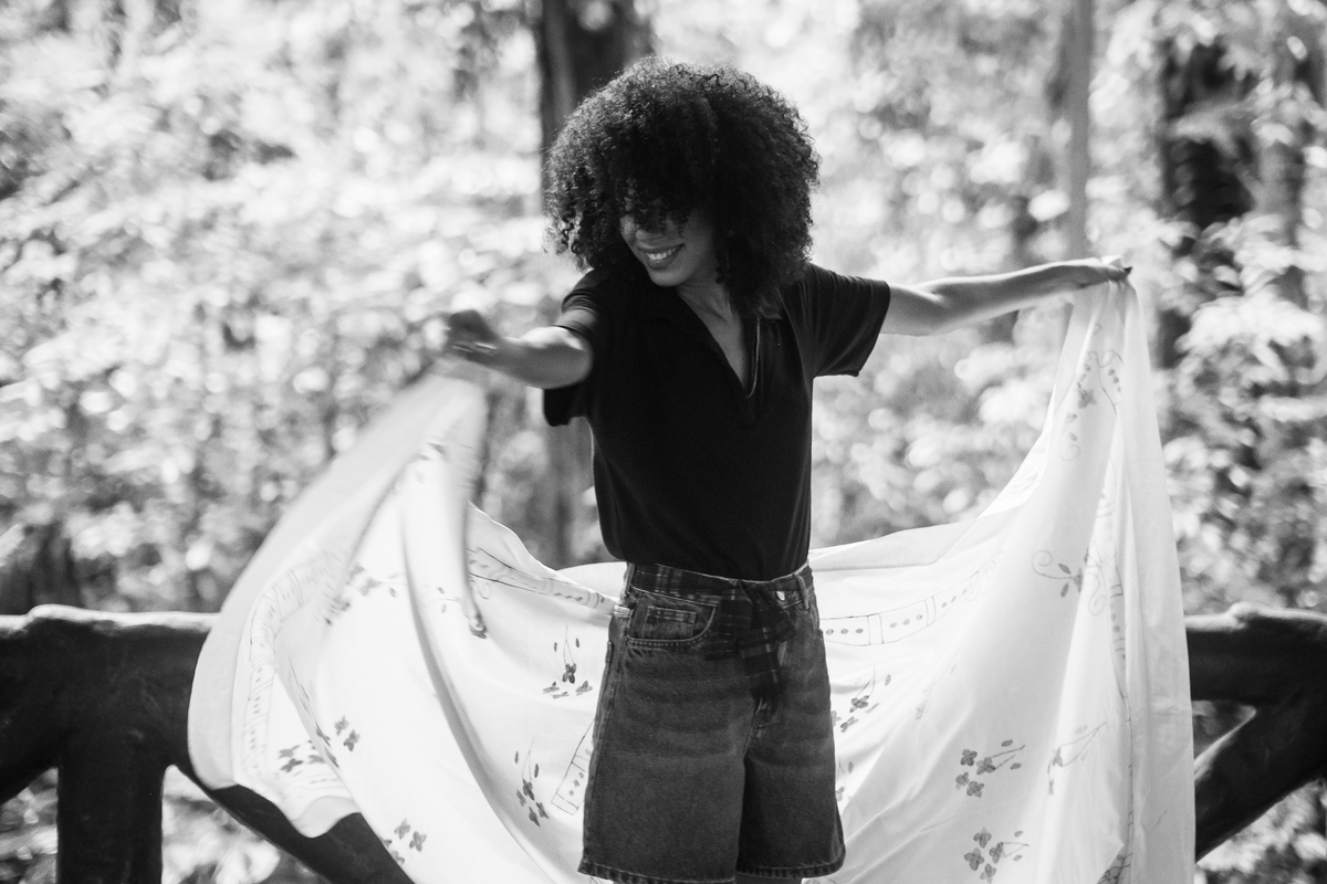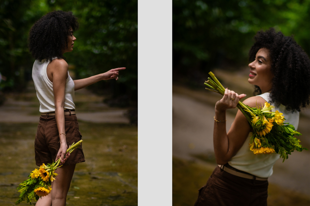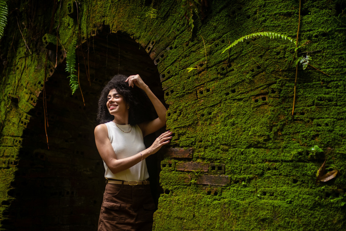 Escolhemos o bosque — um lugar que carrega memória afetiva.